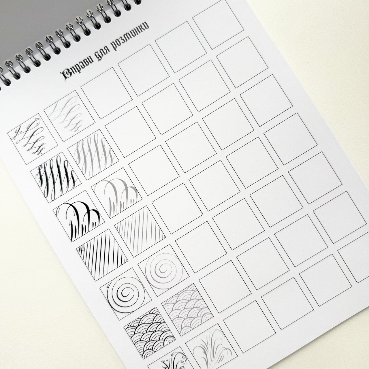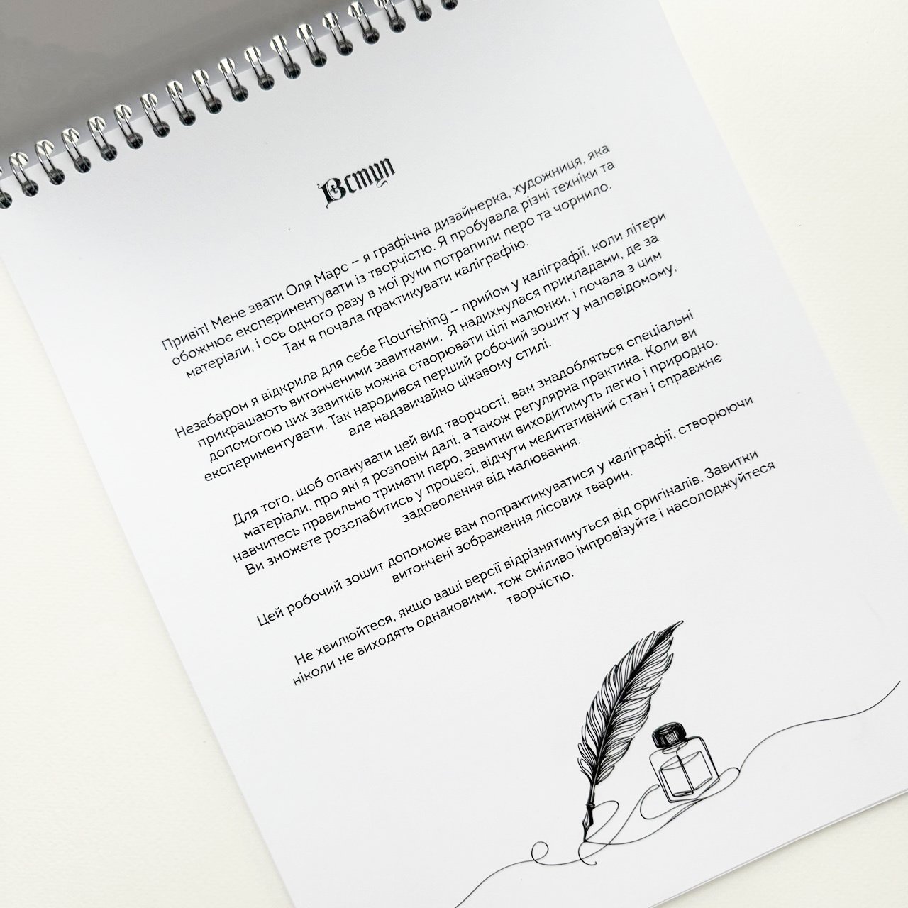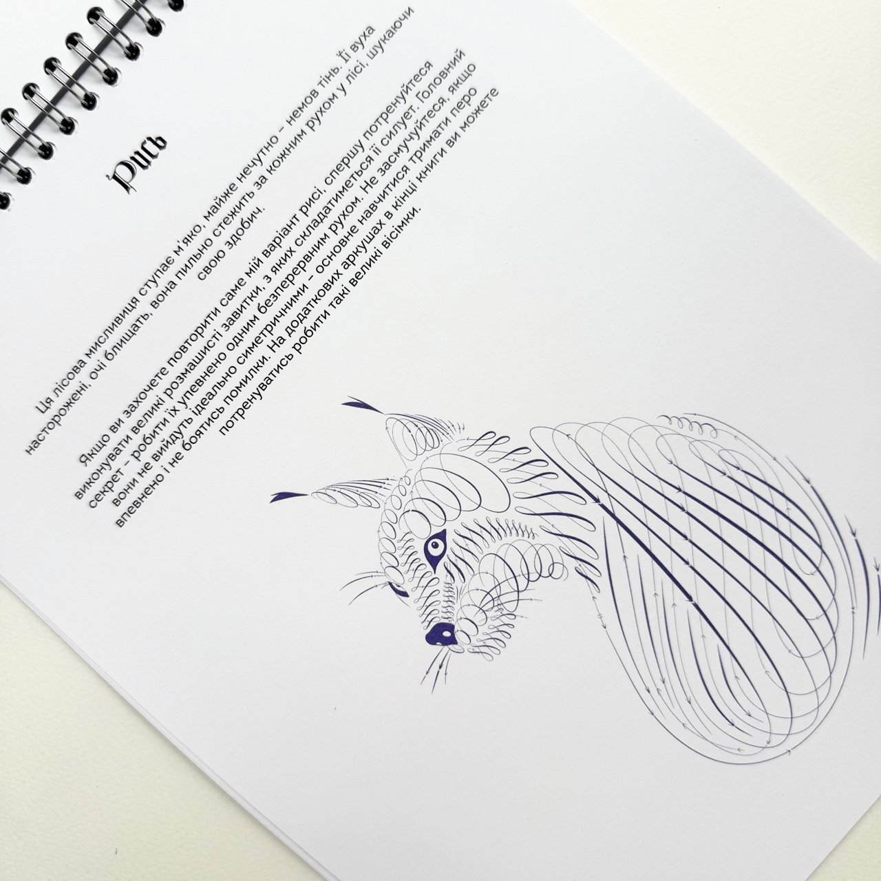 Цей робочий зошит допоможе попрактикуватися у каліграфії, створюючи витончені зображення каліграфічними розчерками, або флоришами. В зошиті коротко розповідається про базові інструменти, надані вправи і запропоновані ескізи розчеркових зображень тварин, які можна відтворити самостійно: вовка, рисі, змії та багатьох інших.
