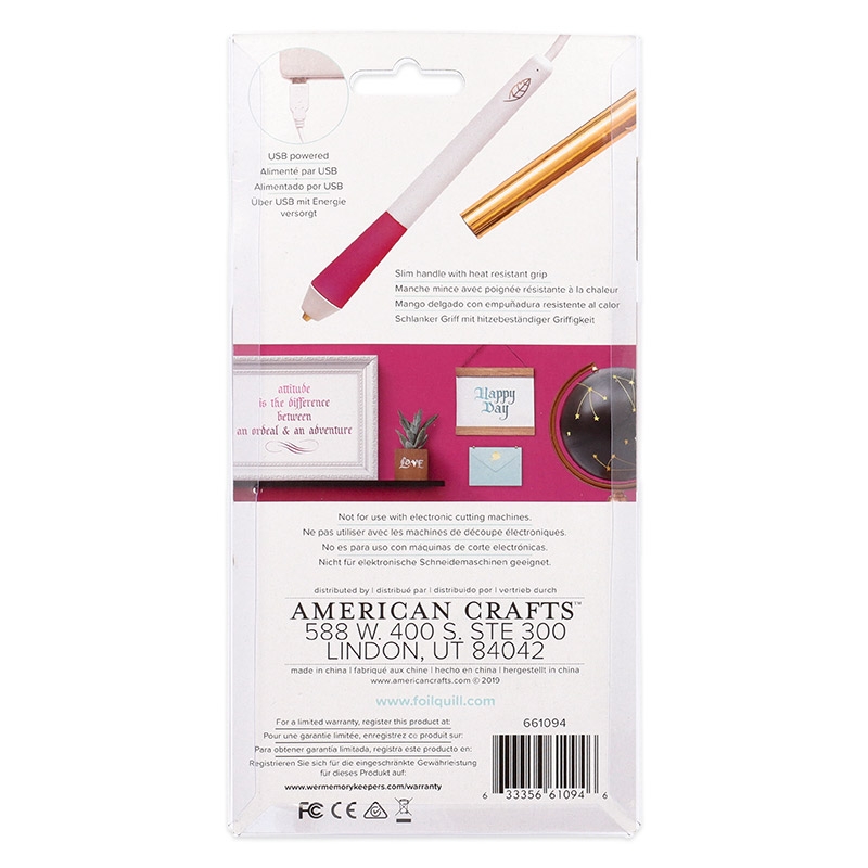 Ручка підключається до порту USB. В комплект входить сама ручка та рулон термотрансферної фольги 122 х 15,5 см (золотого кольору).
