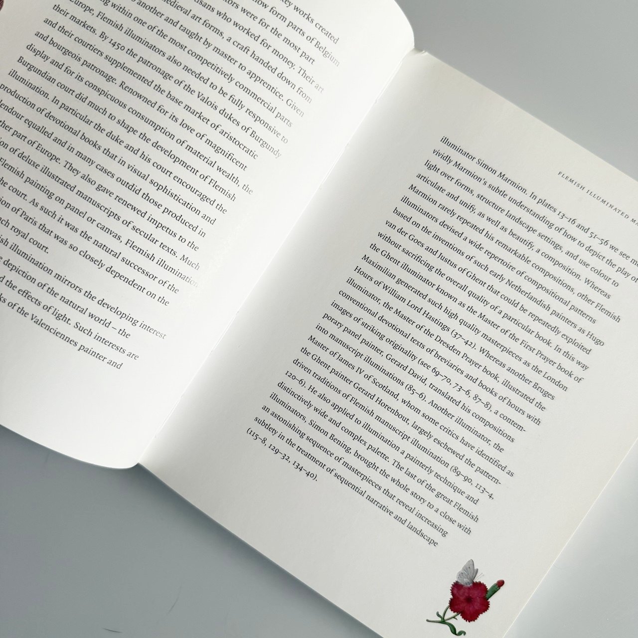 Ця невеличка книга містить понад 140 репродукцій найвидатніших рукописів останньої великої епохи фламандської ілюмінації 1475-1550 років, роботи більшості головних каліграфів та ілюмінаторів тієї доби. Багато з наведених цінних рукописів є справді рідкісними. За відбір зразків, вступ і опис робіт відповідав експерт-куратор Британської бібліотеки Скот Маккендрік.